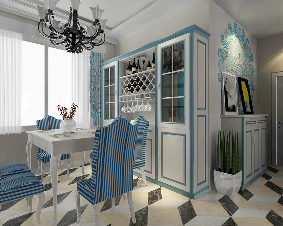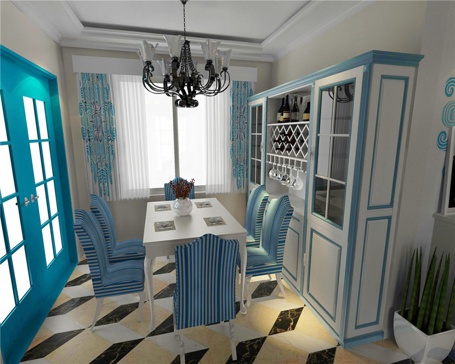 清新靚麗的色彩,讓人眼前一亮,拼接圖形 的大面積使用,讓整體氛圍更加富有神秘感,尤其是背景墻與窗簾布藝的使用,更加的凸顯文藝范,純白色的花瓶中的小花,讓整體視覺更加的溫馨與舒適。